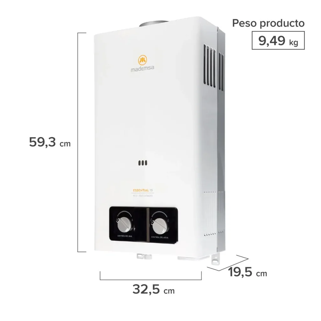 El calefont 10 litros Essential 10 ECO GL Mademsa brinda agua caliente de forma rápida, eficiente y segura en el hogar.