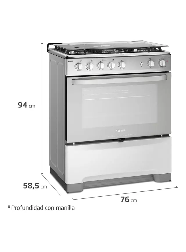 La Cocina a Gas Fensa F 5500 T es un modelo diseñado para quienes buscan eficiencia, potencia y funcionalidad en su cocina doméstica. Con un diseño espejado y cubierta de acero inoxidable, esta cocina cuenta con 5 quemadores, incluyendo un quemador triple llama que permite una cocción más rápida y uniforme. Su horno de 85.56 litros incorpora tecnología VaporBake, que mejora la textura y apariencia de los alimentos al hornear con vapor directo, ideal para panes y preparaciones que requieren crocancia especial.